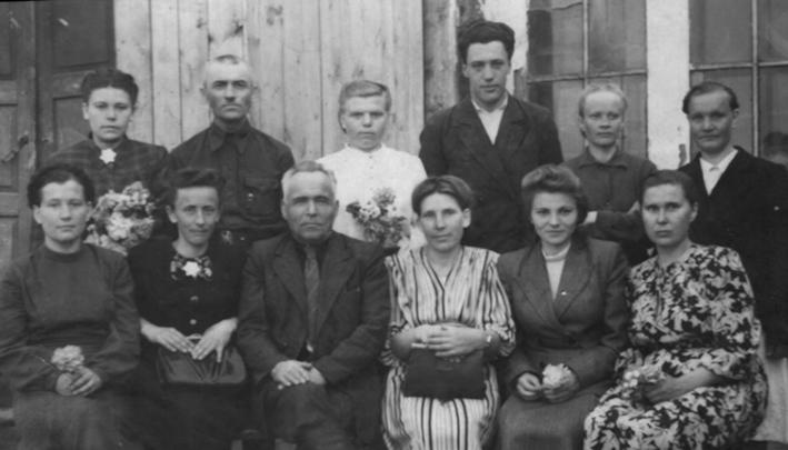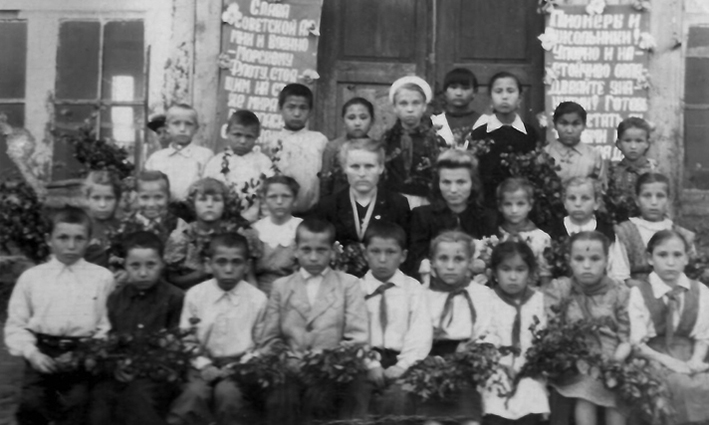 История зданий Урицкой средней школы начинается с 1932 года. Школа находилась по улице Павших Борцов на месте нынешнего парка Павших Борцов. Здание маленькое бревенчатое, крытое тесом. Древесину специально возили из Аманкарагайского лесхоза. Ниже фотография коллектива учителей на фоне первого здания школы.
